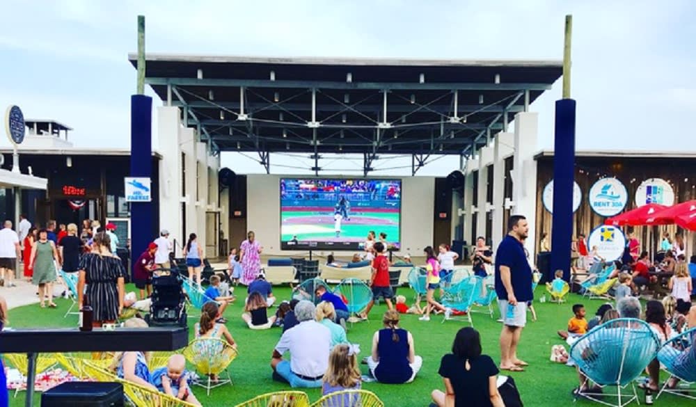 The Hub in Watersound Beach is a premier entertainment district and gathering place for locals to enjoy terrific eateries, shopping, and events. Given the two bars and six restaurants, there’s something to please every discerning palate. All of the fabulous businesses border the lawn and patio area, which offers plush seating, a stone fireplace, and a large event stage boasting a 25-foot LED Jumbotron for movies and sports.