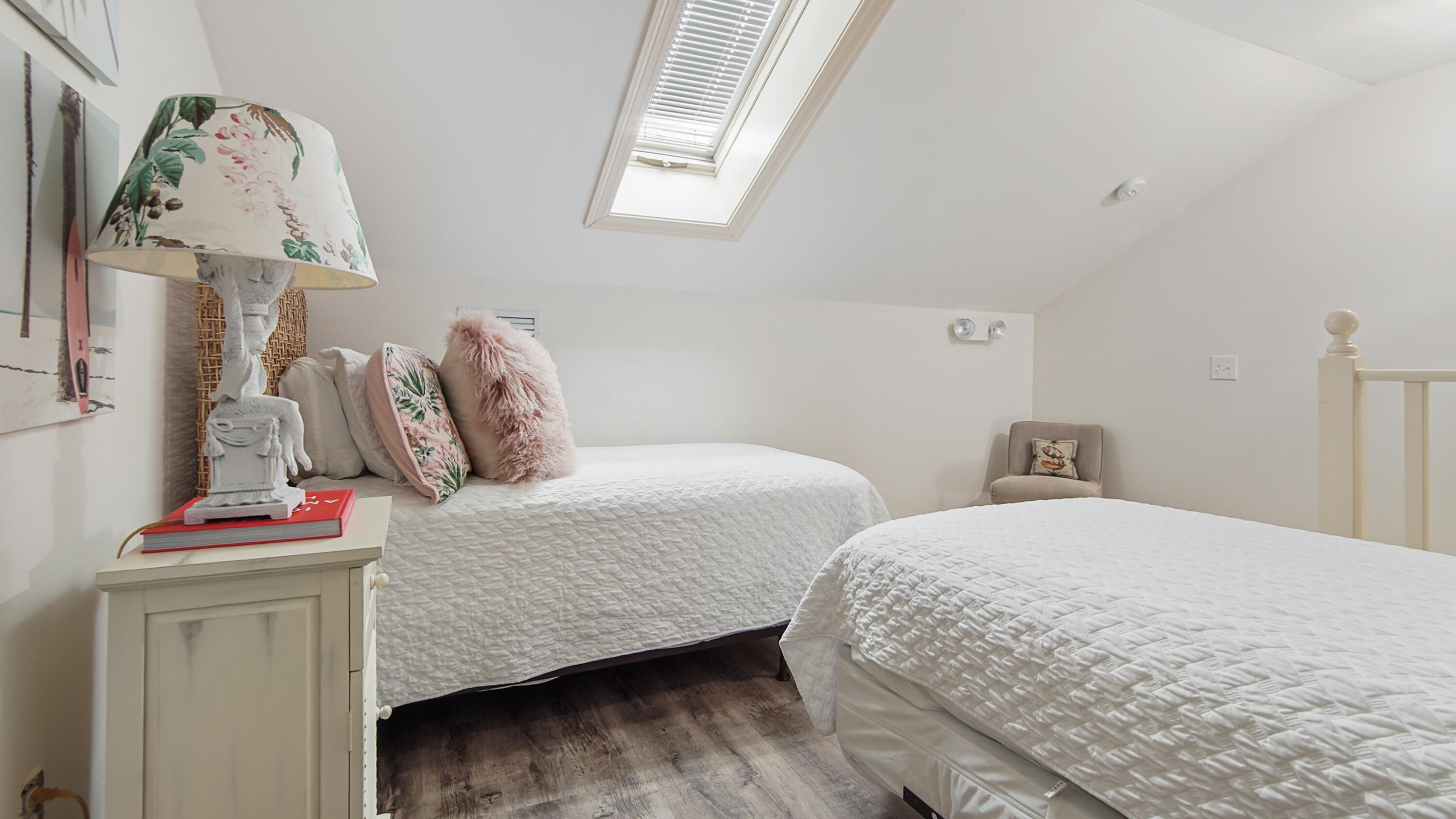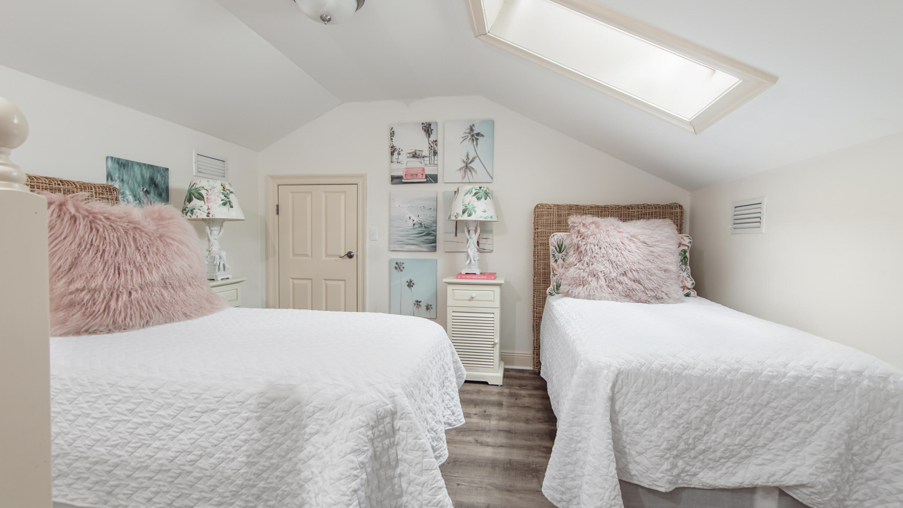 The oversized primary suite provides a private balcony retreat, while the well-appointed secondary bedroom and third-level bunk room allow for flexible accommodations that enhance both guest comfort and rental appeal. Curated coastal decor and designer furnishings create a polished yet relaxed aesthetic throughout.